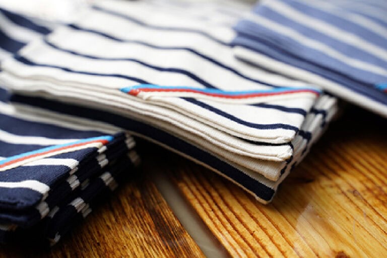 Aus unserer Fachkenntnis und durch unsere jahrelange Erfahrung wählen wir in der Produktion der BRETON STRIPE Kollektion die Single Jersey und Heavy Jersey Qualität. Jersey ist ein Begriff, der verwendet wird, um Stoffe mit gestrickter Konstruktion zu definieren, hergestellt mit einer Strickmaschine. Das Material wurde erstmals im Mittelalter auf der Insel Jersey, England, produziert.